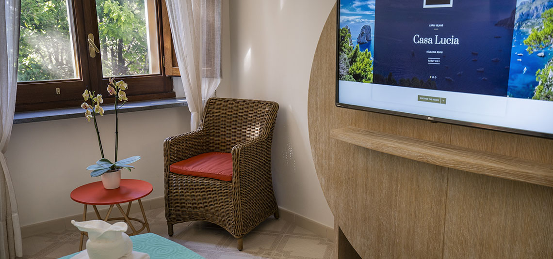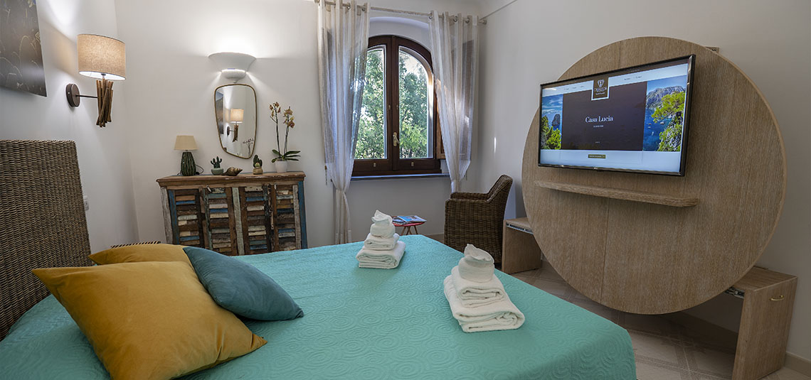 Set in the historic center of Anacapri, B&B Casa Lucia is in a strategic position, easily accessible by taxi or bus, at just 20 meters far from the bus terminal from/to all the directions day and night. The rooms have been recently refurbished taking care of all details in the Capri Style and located in the typical Mediterranean vegetation of the island. In each room there are free WI-FI access, hair dryer, mini fridge, air conditioning, LED digital TV, central heating and coffee/tea making facilities.