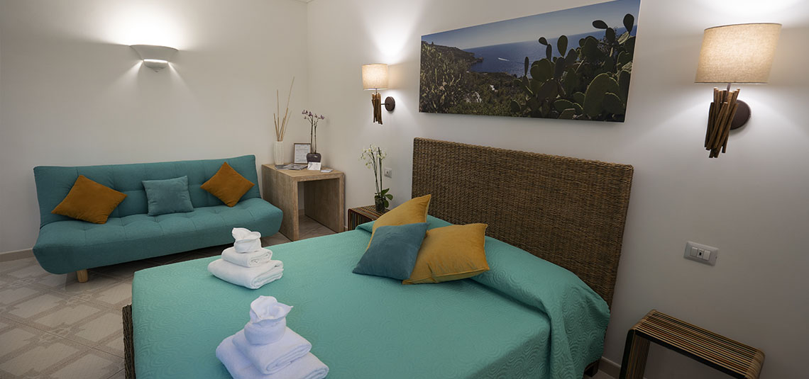 For the morning, we give you vouchers which can be exchanged at Bar Faro or Bar Grotta Azzurra for a delicious continental breakfast each day. Bar Faro is a little but well-furnished pastry, you can choose what you prefer among the desserts of the day, and something to drink. Bar Grotta Azzurra will will delight you with a little buffet served at the table, you will find different types of croissants, a hot drink and a cold drink. We will welcome you with the most cordiality suggesting how to visit every corner of our beautiful island.